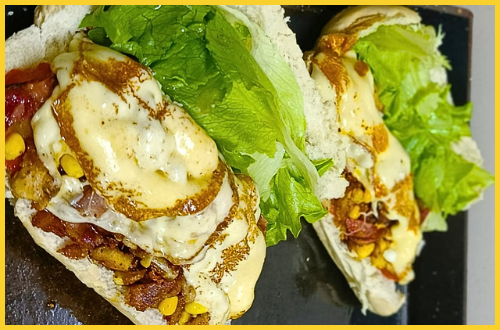 Pão, Filé de Frango, Queijo, Ovo, Alface, Vinagrete, Ketchup e Maionese.